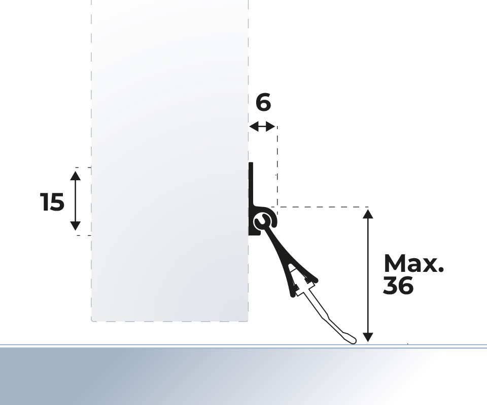 - Espace maximal : 36 mm