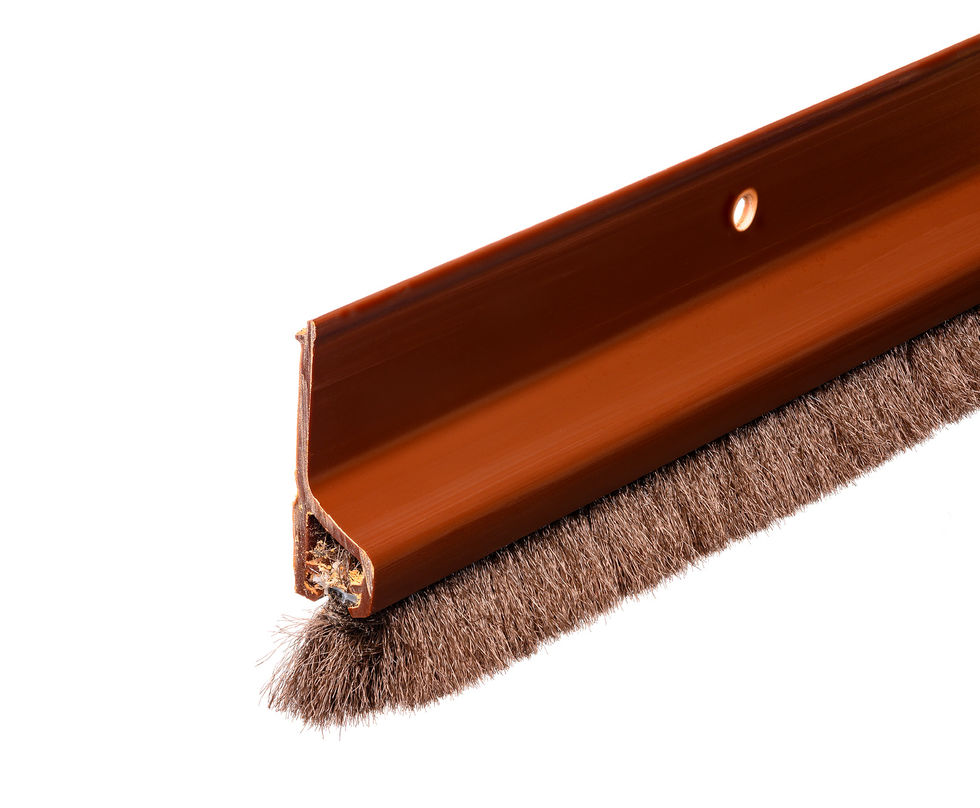 Bas de porte en plastique avec brosse velours, à fixer au bas de la porte.
