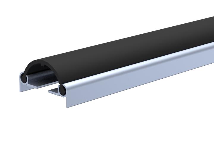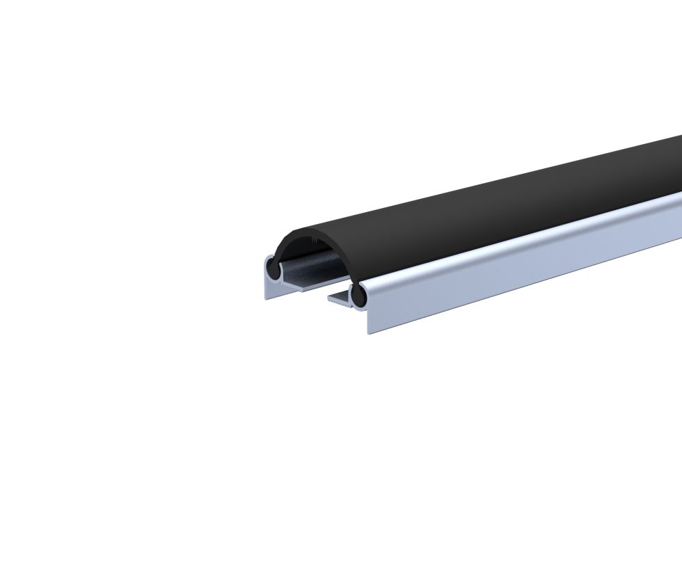 Profil de porte en aluminium avec joint en PVC flexible assurant une parfaite étanchéité entre deux portes battantes.