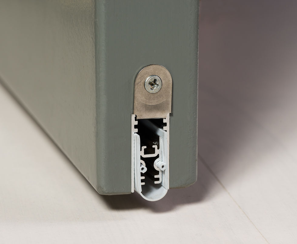 La plinthe automatique EllenMatic Soundproof est un produit résistant au bruit, à la fumée et au feu pour portes en bois. Il assure la fermeture automatique de l'espace sous la porte.