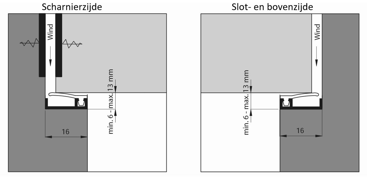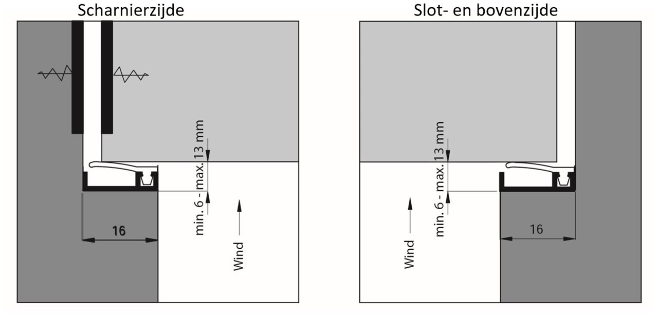 Les courants d'air peuvent être facilement évités en installant correctement le profilé encastré. La pression du vent sur les bords de fermeture et supérieurs assure la pression de la lèvre d'étanchéité contre la partie rotative.